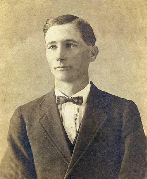 William was an 18-year-old bugler for the Union army. He and his older brother, Josiah, were in the Battle of Prairie Grove in Arkansas 1862 attached to the 6th Kansas Cavalry, Company A. He and some other soldiers were resting by a big tree when a shell carne whizzing at them. It hit the tree. William Wallace was in that exact spot, only on the other side of the tree. He claimed the tree saved his life. He dug the shell out from the tree, and it is now framed and hanging on my wall. (Janet Emery Hayes.) While in Prairie Grove, his detachment became surrounded by the enemy. Nearby was a home which held some women who were Union sympathizers. The ladies gave a big party for the Confederate soldiers and got them kind of drunk, and the Union men were able to slip out of the trap. At one time during the war, Higgins acted as a scout for the Union army. His only encounter with the enemy that he ever mentioned was with a bushwhacker. He said he kept the boots and horse; we assume he killed the owner. While fighting in Arkansas, the