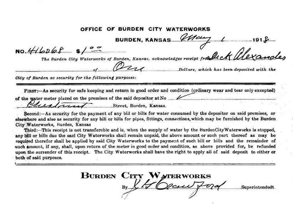 1924 An agreement was signed with the City of Winfield to supply Burden with Electric power by connecting to the electric line which supply Dexter. Burden owned all the lines, lights and other electric equipment which was later sold to the City of Winfield.